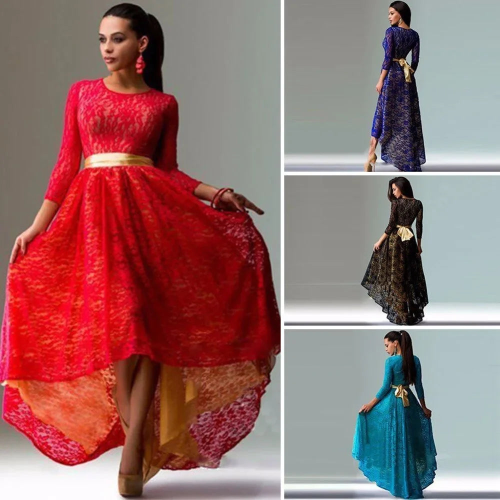 Women Vintage Lace Maxi Dress Elegant Slim Evening Party
